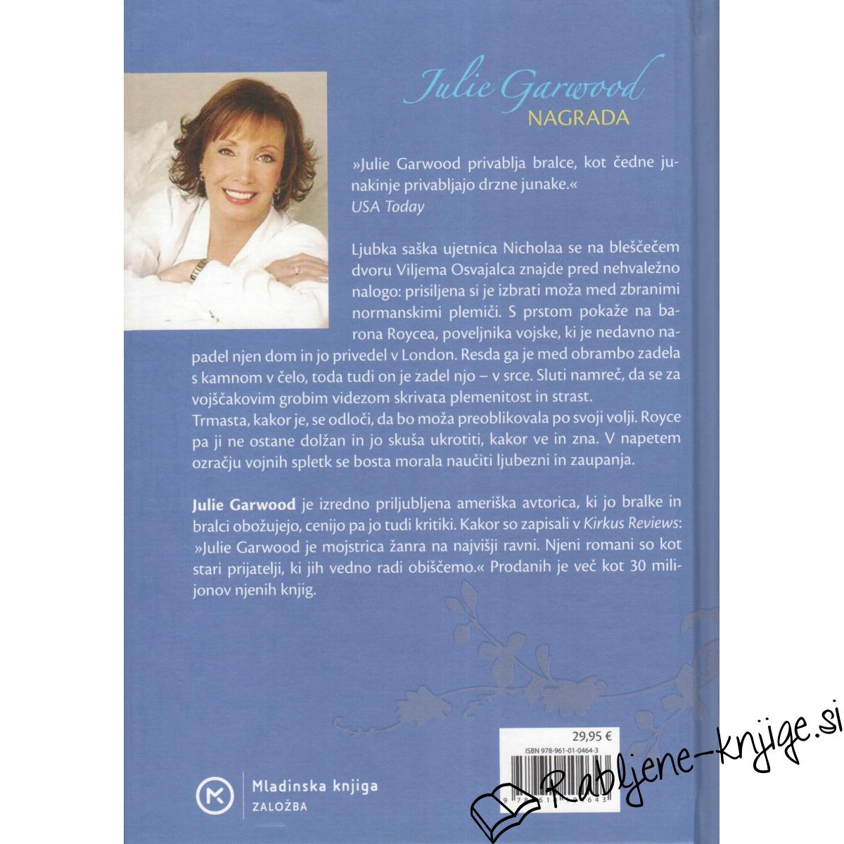 Julie Garwood je izredno priljubljena ameriška avtorica, ki jo bralke in bralci obožujejo, cenijo pa jo tudi kritiki. Kakor so zapisali v Kirkus Reviews: "Julie Garwood je mojstrica žanra na najvišji ravni. Njeni romani so kot stari prijatelji, ki jih vedno radi obiščemo." Prodanih je več kot 30 milijonov njenih knjig.